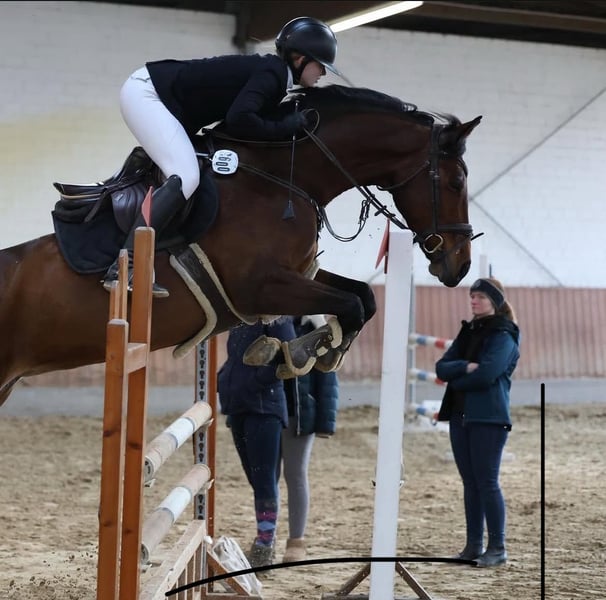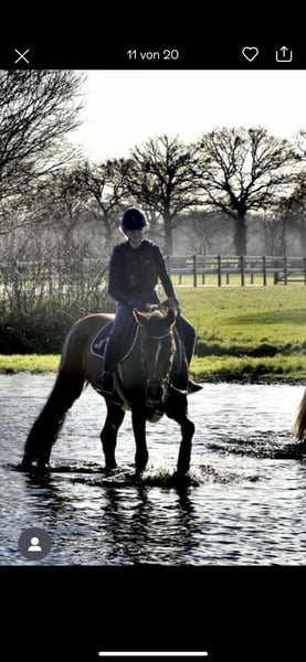Mit schwerem Herzen trenne ich mich von meiner 12 jährigen Stute Conchi einer Lebenspartnerin mit viel Potenzial. Conchi begleitet mich jetzt seit über dreieinhalb Jahren und war in dieser Zeit nicht nur sportlich ein absoluter Glücksgriff, sondern auch ein echtes Herzens und Verlasspferd. Gemeinsam haben wir viele Erfolge gefeiert sie hat mich zuverlässig vom Springreiter-Wettbewerb bis zu Platzierungen in der Klasse L getragen. Im Parcours fühlt sie sich ganz in ihrem Element und konnte bereits mehrfach Prüfungen der Klasse M für sich entscheiden.(potenzial für mehr vorhanden) Auch in der Dressur ist Conchi ambitioniert und zeigt sich dort rittig, mit schönen Platzierungen bis zur Klasse A. Darüber hinaus konnte sie auch in der Vielseitigkeit überzeugen: Beim Bundesfinale in Hannover erreichte sie Wertnoten bis zu 8,0. Auch dieses Jahr nahm sie bereits mehrfach am Geländetraning statt. Außerdem siegte sie beim Junioren Championat unserers Kreisreiterverbands. Sie hat viele weitere Erfolge wie zum Beispiel Achter Noten beim Westfalen 8 Turnier. Conchi ist kerngesund, war während der gesamten Zeit bei uns nie verletzt oder krank und befindet sich in einem sehr guten Trainings und Allgemeinzustand. Sie ist verladefromm, unkompliziert im Alltag und zeigt sich auf Turnieren absolut nervenstark und routiniert. Im Springen überzeugt sie mit einer guten Arbeitseinstellung, einem idealen Grundtempo und einem ausgeprägten Vermögen. Man merkt ihr an, dass sie diese Disziplin mit Leidenschaft ausübt. Conchi stammt aus einer leistungsgeprüften westfälischen Linie und ist im Westfälischen Pferdestammbuch e.V. eingetragen. Für sie wünschen wir uns ein Zuhause, in dem sie weiterhin gefordert wird und ihrer neuen Bezugsperson genauso viel Freude schenkt, wie sie es mir über die vergangenen Jahre getan hat. Sie eignet sich sowohl als Juniorenpferd für ambitionierte Nachwuchsreiter:innen als auch als zuverlässige Partnerin für jugendliche oder jüngere Kinder, die in den Turnier Sport einsteigen möchten. Ein Probereiten ist nach Absprache gerne möglich. Wir bitten jedoch darum, dieses nur bei ernsthaftem Interesse wahrzunehmen.