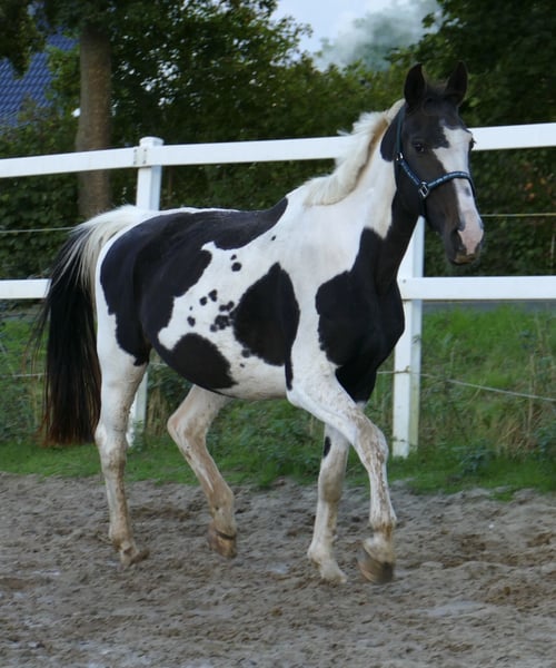 A special offer! Iluminada A - 13-year-old Westphalian mare by Ismo x Shakespeare x Potsdam NRW, height 167 cm. Ilu is homozygous tobiano (so every foal will be spotted), not bred in 2025. She has already produced sport-successful offspring.