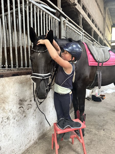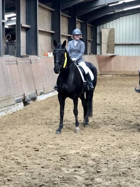 Due to financial and time constraints, I need to sell my mare. Age: 13 years Height: 16.1 hh Training level: knows L-level dressage movements Farrier- and loading-friendly, confident on varied terrain My late grandfather bred Caipi and gifted her to me, so I have known her since she was a foal and have ridden her myself. Her mother (now 28 years old) is still at the same stable and can be visited. At 6 years old, I competed her in young horse classes for half a season, including an A-level dressage test. She was always placed in the top five, often winning. Due to COVID-19, I stepped back from competitive riding and focused on leisure riding. Caipi was even used in holiday programs (trail rides, grooming, vaulting) and is accustomed to the hustle and bustle around children. She was regularly handled and ridden alone by a 7-year-old girl. In dressage work, she is quite sensitive. When asked for more, a light seat is essential, especially in canter. Currently, due to her lack of regular training, she tends to stiffen in the back, become nervous, and shift sideways. She is a very relaxed horse! She can go alone or in a group on rides, and is familiar with cross-country obstacles. She is absolutely compatible with other horses, having been kept in mixed herds or in a mare-only herd. She is used to open stable management and also knows 24/7 turnout; a stall-only setup is not suitable for her. She wears front shoes but does not necessarily need them. Since I have moved to Rhineland-Palatinate for work and couldn't bring her along, she is currently not in regular training (lunged 1-2 times a week). My ideal new owner would be a family who can enjoy her as a versatile riding horse and see her as a true partner. She can be moved with her equipment! A health certificate (AKU) is not available but can be arranged at the new owner’s expense. I am happy to send videos upon request, including a short introduction of myself. A trial ride costs €50, which will be deducted from the purchase price if she is bought.