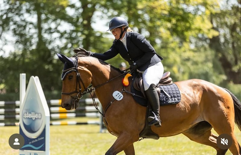 Ik verkoop mijn merrie om persoonlijke redenen. Ze is geboren in 2012 en heeft een schofthoogte van 180 cm. Ik heb haar gekocht toen ze 8 jaar oud was. Ze heeft me door de ruiterexamens gedragen en heeft me begeleid van E tot A** springen, waarbij ze A** geplaatst is. Ook heeft ze met mij terreinproeven tot 80 cm gelopen. Een merrie die altijd naar de andere kant wil. Voor mij is het belangrijk dat ze een thuis voor het leven krijgt! Ze is me echt heel belangrijk en mag geen wisseltrofee worden. Ook geschikt om door kinderen bereden te worden. Halsring, zonder zadel rijden is allemaal geen probleem. Een paard om van te houden en plezier mee te hebben! Ze gaat zelfstandig op de trailer, ook vrachtwagen rijden is geen probleem. Bij de smid en in de omgang verder een schat. Geen aanvragen van handelaren alstublieft. Vanwege haar goede afstamming is ze ook interessant voor de fokkerij. Vader Valeron, moedervader Landor S. Accessoires kunnen tegen betaling worden aangeschaft.