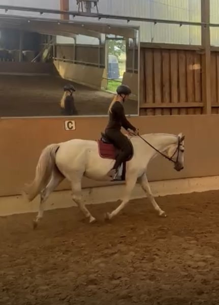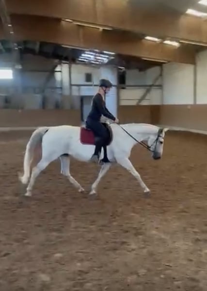 Diese 14 jährige Stute sucht ein neues Zuhause. Sie ist 165cm groß und hat Papiere vom Verband Westfalen. Sie ist Schmiedefromm und vorne beschlagen, Turnierkonform geimpft und die Zähne wurden dieses Jahr gemacht. Aufgrund einer aktuellen Verletzung (Wunde, die selbstverständlich tierärztlich begutachtet wurde und ohne langfristige Schäden) ist sie aktuell aus dem Training genommen und kann nicht probegeritten werden. Ihr Ausbildungsstand ist angeritten, dabei hat sie sich sehr brav verhalten, muss aber noch vieles lernen. Video vom Reiten vorhanden. Aufgrund der Verletzung sehr günstig und weit unter Wert abzugeben. Kann bei Bedarf gegen Erstattung der Fahrtkosten auch ins neue Zuhause gefahren werden. Nur in gute Hände und keine Händleranfragen