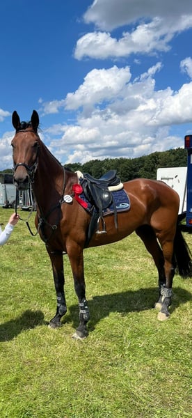 Diese liebe Stute ist 14 Jahre alt und eignet sich sowohl als sicheres Freizeitpferd als auch für den Springsport. Sie ist ein tolles Lehrpferd, das bis zur Klasse M im Springen platziert ist und sich im Parcours stets brav und zuverlässig zeigt. Sie ist turniererfahren, geländesicher und absolut unkompliziert im Umgang – sowohl beim Reiten als auch im täglichen Handling. Verladen, Hufschmied, Tierarzt – alles kein Problem. Außerdem ist sie ein angenehmer und sozialer Weidepartner. Wir geben sie schweren Herzens nur in gute Hände ab.