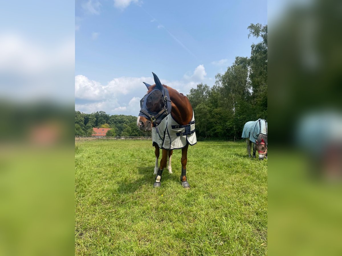 Verkaufe liebevolle Westfale-Stute Schweren Herzens trenne ich mich von meiner wunderschönen Westfale-Stute, geboren im Jahr 2010. Sie ist ein eleganter Fuchs mit einem Stockmaß von 163 cm und überzeugt durch ihr freundliches Wesen und ihre entspannte Art. Dieses charmante Freizeitpferd eignet sich hervorragend für entspannte Spaziergänge, freizeitmäßiges Reiten und gemeinsame Stunden im Gelände. Sie ist gut ausgebildet, zuverlässig und besitzt einen angenehmen Charakter, der sie zu einem idealen Begleiter für Freizeitreiter macht. Es bestand eine Zyste am Fesselgelenk, die operativ behandelt wurde. Das Pferd befindet sich im Aufbau und ist derzeit eingeschränkt belastbar, zeigt sich dabei aber brav und motiviert. Bei entsprechendem fachgerechten Aufbau besteht laut tierärztlicher Einschätzung die Aussicht, perspektivisch wieder belastbar zu sein. Ideal für Freizeitreiter, die Freude daran haben, es weiter aufzubauen, oder zum Betüddeln. Aufgrund der guten Abstimmung auch zur Zucht einsetzbar. Bei Interesse oder weiteren Fragen stehe ich Ihnen gerne zur Verfügung. Vereinbaren Sie doch eine Proberunde und überzeugen Sie sich selbst von diesem bezaubernden Pferd!