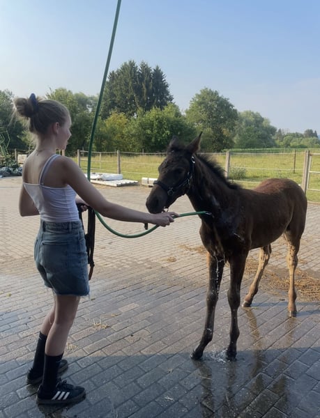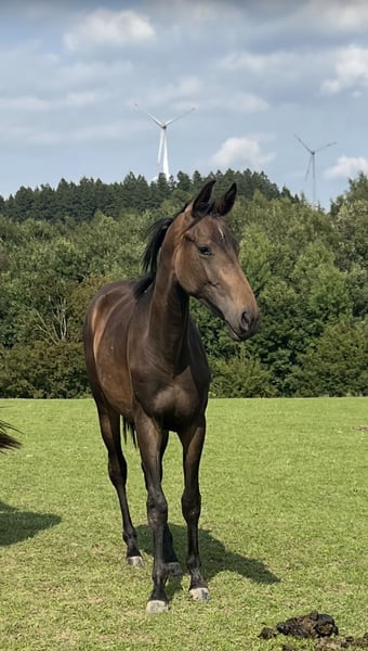 Zum Verkauf steht eine im April 2024 geborene, typvolle und freundliche Jährlingsstute mit bester Dressurabstammung (Toto Gold x Wolkentanz I). Die braune Stute zeigt sich sehr menschenbezogen und neugierig. Sie ist korrekt gebaut, hat drei sehr gute Grundgangarten und bewegt sich taktsicher mit schöner Elastizität. Die Stute wächst artgerecht in der Herde auf, kennt das Fohlen-ABC und ist regelmäßig entwurmt und dem Schmied vorgestellt. Ein tolles Nachwuchspferd für Zucht, Sport oder ambitionierte Freizeitreiter.