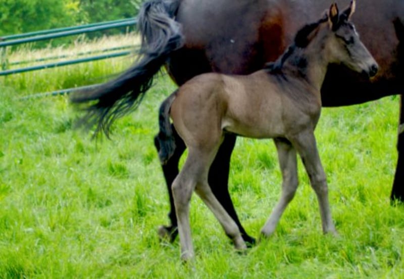 Sold If you are interested in a foal from this dam line, please feel free to contact us. Lorena is expecting a foal by GREAT EUROPE in 2026. Elli A tall, stunning, affectionate princess—truly a beauty you can hardly paint better. Everything about her is perfect, and her excellent interior was no surprise, knowing from the U.S. breeder circles that Extrem U.S. produces very friendly, well-balanced horses. We also know our Laurena, which I personally rode before breeding. We honestly did not expect Elli Extrem to have such an adorable doll-like head, and we are delighted—likely the future owner will be too. About her sire, EXTREM U.S.: - Pavo Cup, KWPN Stallion Performance Test, and HLP winner - No higher achievements are possible at this age Extreme U.S. carries the champion gene and passes it on. From his debut year, he sent a record seven offspring to the KWPN Foal Championship, including Tamina Delin BS, the champion foal, and Thor F, the bronze medalist and best colt in Ermelo, NL. He has repeatedly produced top-priced foals at elite auctions such as Prinsjesdag/NL, Borculo/NL, Stal Brouwer/NL, and DSP Big Chance Auction. In 2023, Extreme U.S. won the Pavo Cup under his rider Renate van Uytert-van Vliet/NL, earning a dream score of 10 from foreign rider Daniel Bachmann Andersen/DEN. He dominated the prestigious KWPN Stallion Competition, scoring 89.2 points in Kronenberg/NL and 89 points in Ermelo/NL. In 2024, he placed fifth in the final standings of the five-year-old Pavo Cup. His HLP in 2022 concluded with an overall score of 89 points (9.0 for trot, walk, elasticity, balance, rideability, and talent; 8.5 for canter). About her dam, Lorena by Lauries Crusador: Lorena, a mare as beautiful as one could imagine, I bought six years ago as a riding horse. As an experienced rider, I was looking for a calm, friendly horse that would never (!) buck. Lola was just broken in at the time, and although buying an inexperienced young horse was a bit crazy, that’s how some eventers are sometimes... The lovely Lola, as I call her, has fulfilled all my wishes. She was always well-behaved under the rider, never bucked under saddle, and really tried hard for me—a somewhat nervous, older lady. She even went on an eventing clinic with me, despite my fears and her lack of eventing experience. To keep it brief: She is not only stunning but also possesses high rideability. Anyone reading her dam line will understand that there is a genetic potential for rideability. This wonderful mare has gone on trail rides alone and with me, participated in eventing clinics, and gone on rides in the Eifel, Sauerland, and North Sea regions—all without ever disappointing me. Dressage lessons with her were also enjoyable because she combines high rideability with sensitivity. She is now expecting her third foal. Her first foal by Dimaggio was sired by Axel Windeler, and shortly after weaned, I bought Lola. In 2024, she had a very good colt by FOLLOW HIM SCHÖNWEIDE, which we sold to excellent hands in Switzerland. Lorena herself has a very good dam line tracing back to the stallion Salut, which is why jumping is also part of her pedigree. Dam Line: Lorena - Leonidas v. Lauries Crusador xx, DRE: S*-successful with Christoph Göb - Roccadinio v. Rock Brasiliano, DRE: M**-successful with Annika Koch - Duke de Niro v. De Niro, Stallion, DRE: International Grand Prix Special successful with Maria Gonzales, USA - Bellevue v. Barclay, VA 2014, DRE: M*-successful with Vivien Pendias - World Girls Magic v. White Star, DRE: M*-successful with Bernd Wichert - FRH Leoberta v. Laptop, Team Gold at the German Championships, eventing—Young Riders 2010 with Tomke Ehlers - Quapitola de Beaufour v. Diamant De Semilly, SPR: International S****-successful with Tim Rieskamp Goedeking - Roy v. Rheingau, DRE: GP successful with Bärbel Eppinger What potential do we see in this beautiful foal, Elli Extrem? We believe she will later be a versatile riding horse suitable for all disciplines, including smaller show jumping or eventing, with a wonderfully balanced temperament and a whinny when you enter the stable. We estimate her height at around 170 cm. Her main strength, in our opinion, will be in dressage, where her high rideability—thanks to both her parents—will make riding easier for her rider. If you are interested in Elli Extrem, please feel free to call: 0176 10150910 Kati Budde