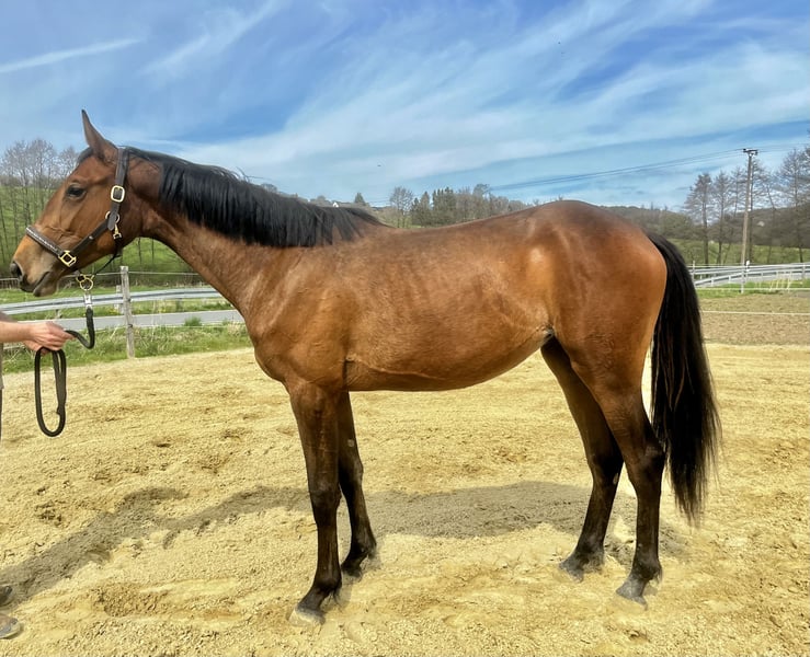 Pokers Marie – vielversprechende Westfalenstute mit Top-Abstammung für den Springsport Zum Verkauf steht die moderne und großrahmige Westfalenstute Pokers Marie, geboren im Juni 2024, mit besten Voraussetzungen für eine erfolgreiche Zukunft im Springsport. Die Stute misst aktuell ca. 165 cm und wird voraussichtlich ein Endmaß von deutlich über 170 cm erreichen. Abstammend von Poker de Mariposa aus einer leistungsgeprüften Mutterlinie (Carrico x Arpeggio), deren Mutter als Hauptprämienstute ausgezeichnet wurde, vereint sie hervorragende Genetik mit sportlicher Aufmachung. Sie stammt direkt vom Züchter und ist im Herdenverband artgerecht aufgewachsen, was sich in ihrem ausgeglichenen Wesen und ihrer klaren, ehrlichen Art widerspiegelt. Bereits jetzt überzeugt sie durch sehr gute Grundgangarten, eine kraftvolle, aktive Hinterhand sowie eine klare Einstellung. Sie zeigt sich aufmerksam, lernwillig und unkompliziert im täglichen Umgang. Beim altersgerecht aufgebauten Freispringen präsentiert sich Pokers Marie mit guter Übersicht, Vermögen und viel Gleichmaß. Sie geht die Aufgabe gelassen und motiviert an und lässt bereits jetzt ihre Qualität am Sprung erkennen. Im Umgang ist sie bestens erzogen: Hufschmied, Anbinden, Putzen sowie Spaziergänge sind ihr vertraut. Eine hochinteressante Nachwuchsstute für ambitionierte Reiter und Züchter, die Wert auf Qualität, Charakter und Perspektive legen.