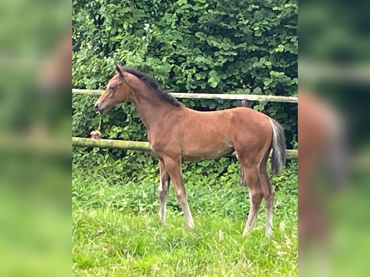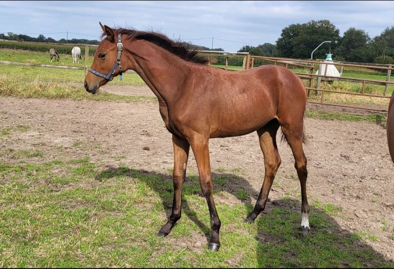 For Celebration PTW was born on 01.05.2024. This is a very strong type filly with 3 above-average basic gaits. Top developed, friendly, people-oriented character. She knows the foal ABC and could move into her new home from November. Current location is 48565 Steinfurt. The foal can be viewed there by appointment. Details of the dam line: The dam of the foal is our Westphalian StPrSt. Emirates GV (Escolar/ Breitling W/ Christian Prince xx), born in 2014. She won a 1d prize at the Eliteschau Westfalen 2017, passed her SLP with a dressage final score of 8.1 in Münster/Handorf 2017, was victorious in dressage tests for young horses up to elementary level internationally and is trained up to medium level. Due to Corona, she switched to breeding at the age of 6. In 2022 and 2024, Emirates GV produced typey fillies with very good gaits by Lilliano OLD and this same For Dance. There are no known health issues with the dam, she is rideable. Granddam Burj al Arab was auctioned off at the CHIO Aachen at a high price and ran up to PSG/Inter I under Mrs. Max-Theurer. Burj al Arab's granddam Zoliante produced the licensed full brothers Dream of Heidelberg I and II (both by Donnerschlag), the latter of which was part of the British Olympic squad under Emile Faurie. The currently highly successful Dutch Lady Reveil line includes Le Maitre (by Lanciano), Wer Weiß (by Wall Street), Del Vento (by Donnerwind), Agilan (by Abanos), Rialto and Richellieux As (both by Riccione) as well as numerous other licensed stallions and sport horses. Our filly therefore comes from a performance-tested and healthy dam with the best pedigree in her background. Please contact us if you are interested.
