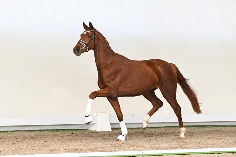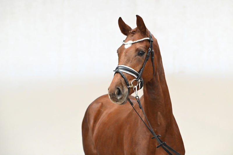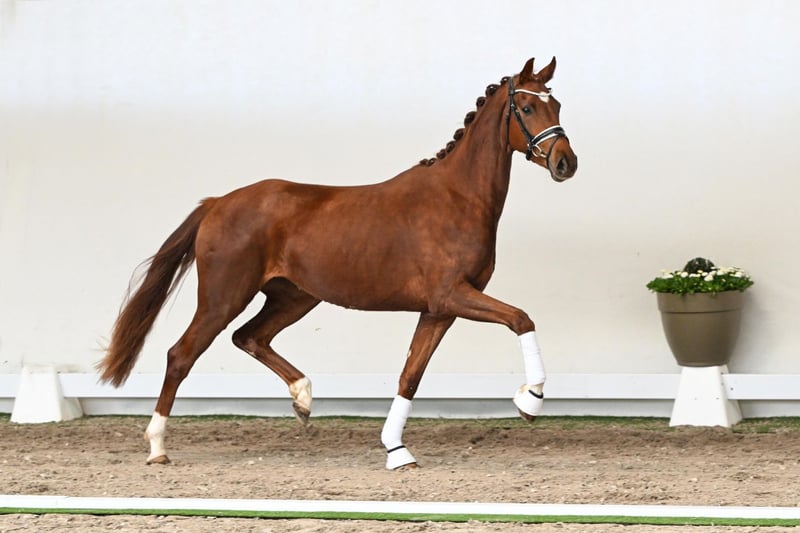 Here grows a true movement artist. This elegant and charming filly captivates with her outstanding conformation and rideability points, a refined head, and calm, large black eyes – a real eye-catcher. Her walk, trot, and canter are of exceptional quality: this little ballerina for the dressage arena combines everything that makes a dressage star. Looking for something special? Federleicht is ready to dance through the arena with you. She is by Feliciano, an athletic, modern stallion with correct conformation and top-level rideability. Feliciano impressed at the 2022 Vechta performance test and presented an exceptional first foal crop in 2023, full of show winners and championship foals. Her maternal grandsire, Dimaggio, 2000 World Champion of five-year-old dressage horses, has profoundly influenced the Donnerhall line and produced numerous top horses up to Intermediaire I level. Her great-grand-sire, Fürst Heinrich, also World Champion of five-year-old dressage horses, is considered one of the most influential modern dressage sires and has left a lasting legacy of successful S-level offspring. Federleicht combines top-class pedigree, exceptional movement quality, and an elegant presence – a horse for ambitious riders seeking something truly extraordinary.