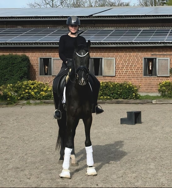Diese wunderschöne, elegante Rappstute beeindruckt durch ihr harmonisches Erscheinungsbild und ihre vielversprechenden Grundqualitäten. Mit einem Stockmaß von 166 cm bietet sie die ideale Größe für den Dressursport und zeigt bereits jetzt eine ausgeprägte Lernbereitschaft sowie eine angenehme Grundhaltung. Noch nicht lange unter dem Sattel weist diese Stute trotzdem schon eine hohe Rittigkeit und dabei ein tolles Interieur auf. Auch für den jungpferdeerfahrenen Amateur geeignet. Ein guter TÜV liegt vor.
