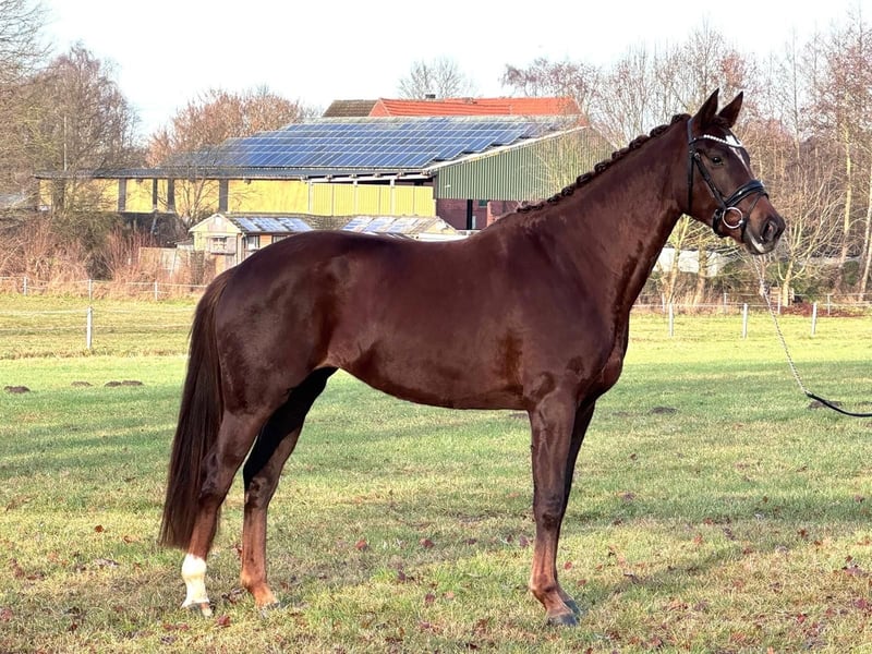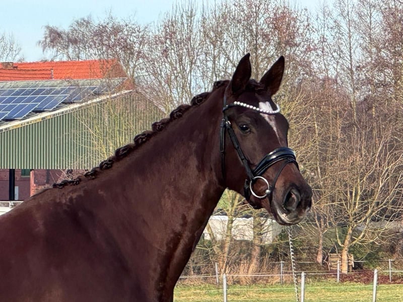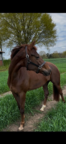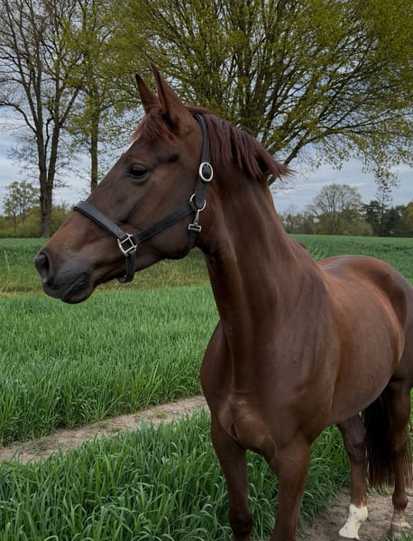 Vierjährige, unkomplizierte Stute mit top Einstellung - gezogen über die Rittigkeitsvererber Sezuan, Lauries Crusador und Donnerhall. Sydney wurde 3-jährig schonend angeritten, durfte anschließend nochmals Zeit zur Entwicklung auf der Wiese genießen und ist nun wieder unter dem Sattel. Dabei zeigt sie sich sehr rittig und lernwillig. Sie gibt dem Reiter stets ein sicheres und schönes Reitgefühl. Auch im tägliche Umgang ist sie absolut unkompliziert. Derzeit steht sie noch am Anfang ihrer Ausbildung, bringt jedoch alle Voraussetzungen für ein erfolgreiche Zukunft mit und möchte nun weiter gefördert werden. Aufgrund ihrer Einstellung und ihrer unkomplizierten Art ist sie auch für ambitionierte Amateure oder als Nachwuchsprojekt bestens geeignet. Ein Pferd mit Perspektive, die ihrem Reiter jeden Tag Freude bereit. Ein aktueller TüV ist vorhanden. Ein Video kann bei Interesse per Whatsapp verschickt werden. Pk: 25.000-30.000