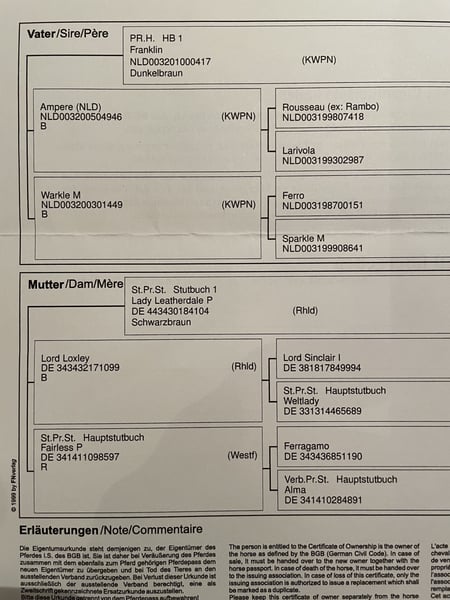 Cosi ist eine ruhige, selbstbewusste und unkomplizierte vierjährige Stute von Franklin aus der Lady Leatherdale, der Mutter des gekörten Hengstes Bernay. Cosi lässt sich gut vom Hufschmied führen, verlädt leicht, lässt sich alleine oder mit Freunden ausreiten und steht ruhig beim Scheren. Sie ist klug, lustig und lieb. Cosi ist umgeben von Schweinen, Hühnern, Enten und Hunden aufgewachsen und lässt sich nicht so leicht aus der Ruhe bringen. Cosi ist 175 cm groß. Ihre Zähne wurden gerade gemacht. Sie wurde regelmäßig entwurmt und geimpft und war weder krank noch lahm. Sie geht täglich mit einer Gruppe anderer Stuten raus und versteht sich gut mit ihnen.