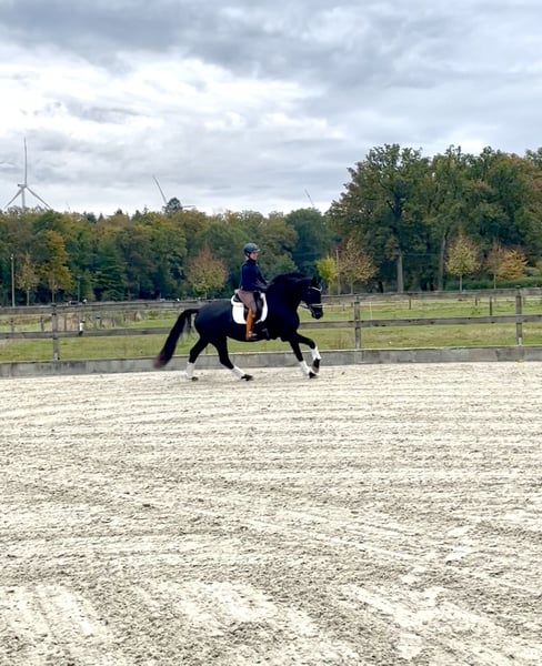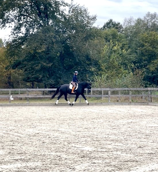Cosi is a calm, confident, and uncomplicated four-year-old mare by Franklin out of Lady Leatherdale, the dam of the licensed stallion Bernay. She is easy to handle when being shod, loads effortlessly, and can be ridden alone or with friends. She stands quietly for grooming. Intelligent, playful, and affectionate, Cosi has grown up surrounded by pigs, chickens, ducks, and dogs, which has made her quite unshakable. She is 175 cm tall. Her teeth have been recently floated. She has been regularly dewormed and vaccinated, and has never been ill or lame. She is turned out daily with a group of other mares and gets along well with them.