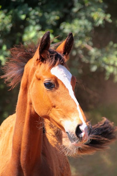 Dieses qualitätsvolle Stutfohlen aus dem ersten Jahrgang des FIRST DEAL besticht durch Korrektheit, Typ und Grundqualität. Auch in Sachen Charakter lässt dieses Fohlen keine Wünsche offen. Vater FIRST DEAL war gefeierter Prämienhengst bei den Oldenburger Hengsttagen und absolvierte seine Sportprüfungen beide mit Noten über 8,0. Er ist siegreich in Dressurpferdeprüfungen der Klasse A-M und wird nun schonend für größere Aufgaben vorbereitet. Muttervater Hancock war Trakehner - Siegerhengst und glänzte ebenfalls als strahlender HLP - Sieger mit der Endnote 8,78. Inzwischen weist er Erfolge bis zur Klasse S auf.