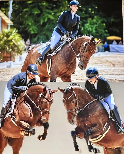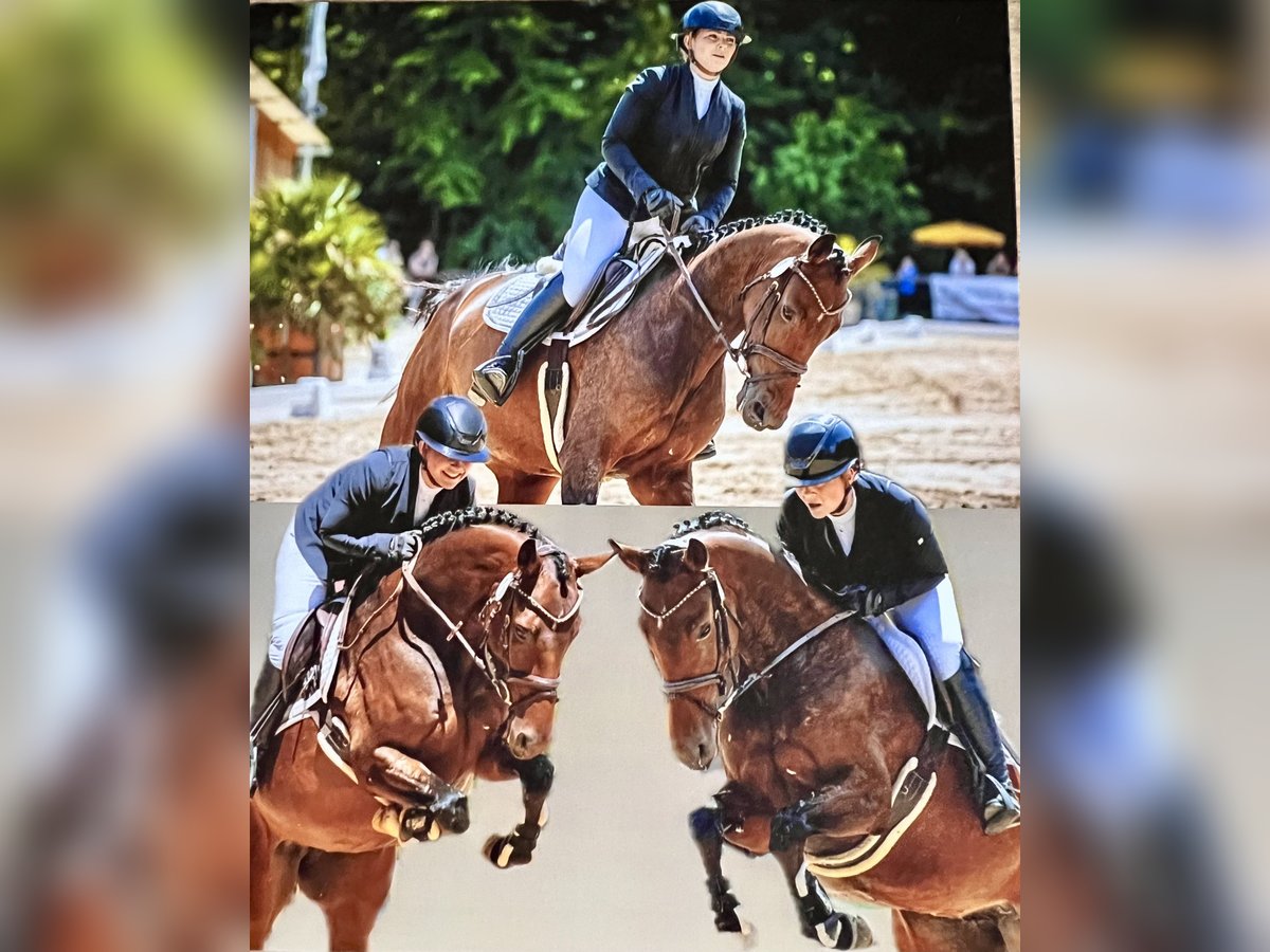 ⭐ Hochinteressante 5-jährige Nachwuchsstute – Qualität, Charakter, Vielseitigkeit und bester Gesundheit⭐ Absolut geeignet für Reiter*innen jenseits der 50 oder 60, also dem neuen 40 ✨Oder aber auch für 3 Generationen 🧒👩🏼👱. Zum Verkauf steht eine bildschöne 5-jährige Verb.-Pr. Stute aus eigener Zucht mit der begehrten Abstammung For Romance x Christ. Im leichteren bis mittleren Rahmen stehend entspricht sie sehr dem Typ eines Amazonenpferdes oder auch noch dem eines XL-Ponys. Sie wurde bisher liebevoll von uns familienintern angeritten und ausgebildet. Diese junge Stute vereint Rittigkeit, Intelligenz und Leistungsbereitschaft in besonderer Weise. Von Anfang an überzeugte sie durch ihre sehr schnelle Auffassungsgabe, ihre Motivation zu arbeiten und ihren klaren, unkomplizierten Charakter. Ihr Talent stellte sie bereits früh unter Beweis: Bei ihrem ersten Turnier (Eignung) konnte sie sich direkt auf dem 3. Platz platzieren. Trotz dressurbetonter Abstammung zeigte sie auch im Parcours ihr Vermögen und gewann direkt ihre erste Springpferdeprüfung der Klasse A. Besonders bemerkenswert ist ihre Vielseitigkeit und Nervenstärke. Sie war bereits vierjährig mit auf Norderney, kennt Ausritte und zeigt sich auch in neuer Umgebung souverän, neugierig und ausgeglichen. Damit bringt sie beste Voraussetzungen für eine erfolgreiche sportliche Zukunft mit – sowohl in der Dressur, im Springen oder als hochinteressantes Allround-Sportpferd. Diese Stute ist ein echter Amateurtraum: talentiert, rittig, lernwillig und dabei absolut angenehm im täglichen Umgang. ✔Amazonenpferd, 1,64 m ✔️ eigene Zucht ✔ talentiert und vielseitig veranlagt ✔ bereits erfolgreich im Turniersport ✔ sehr intelligent und lernwillig ✔ ausreit- und geländeerfahren ✔ klar im Kopf und unkompliziert ✔️ altersentspr. platzierte Halbgeschwister Ein hochinteressantes Nachwuchspferd, das sowohl ambitionierten Amateuren als auch sportlich orientierten Reitern große Freude bereiten wird. Weitere Informationen, Videos und Probereiten gerne auf Anfrage. Preislich liegt sie im unteren Bereich der PK.