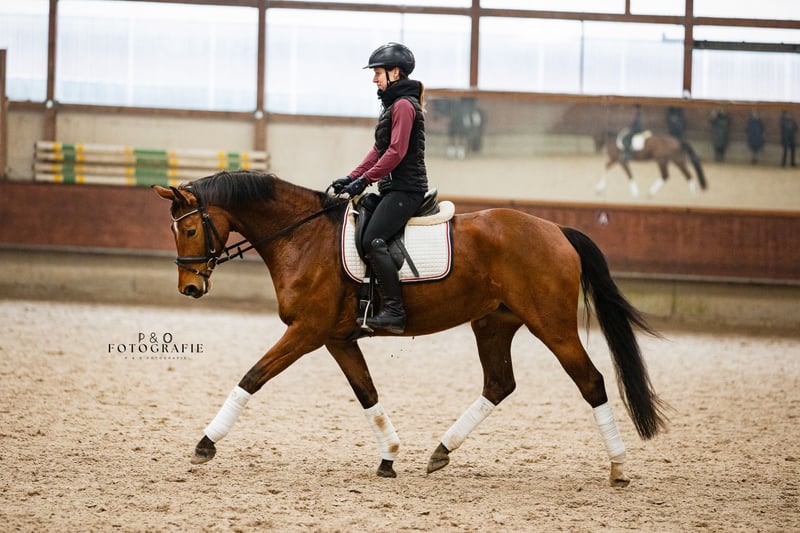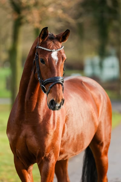 Suki is een dressuurpaard in de opbouwfase met prachtige bewegingen en drie uitstekende gangwerk- en dressuurkwaliteiten. Ze beschikt over veel go en kracht, is gevoelig en fijn aan de hulpen, maar altijd braaf en absoluut niet schrikachtig of oplettend. Ze is rijdbaar, zitcomfortabel en heeft de benodigde snelheid in haar bewegingen, ondanks haar veel schwung. Haar achterbeen is bijzonder te noemen. Suki heeft al ervaring op concoursen opgedaan en is geplaatst in de L- en M-dressuur. Ze is door haar fokker nog volledig onbelast en wacht op haar grote doorbraak in de ring; haar verdere opleiding zal zich zeker uitbetalen en veel plezier brengen. Bekijk haar en word verliefd! Een geldige keuring (TÜV) van 01/25 is aanwezig, inclusief hals, en Suki is vrij van EVCM.
