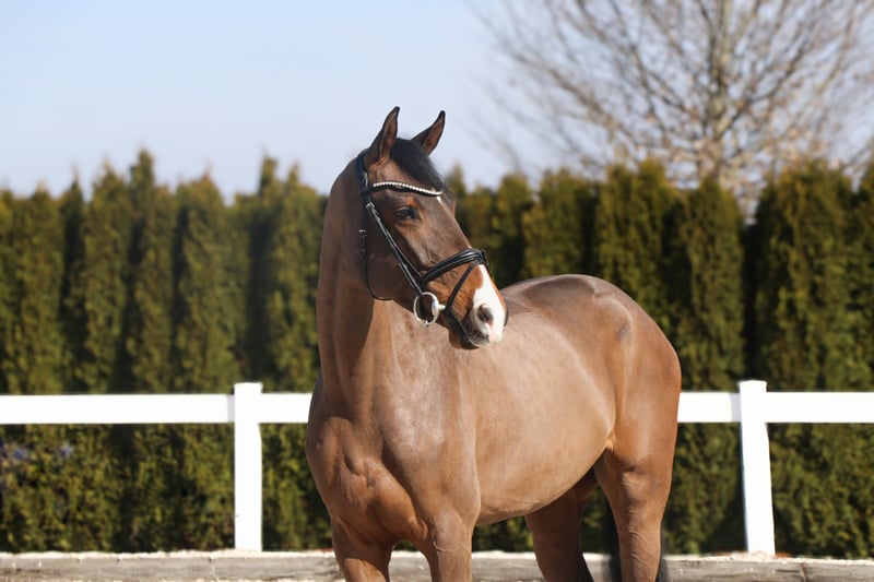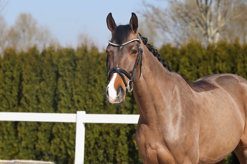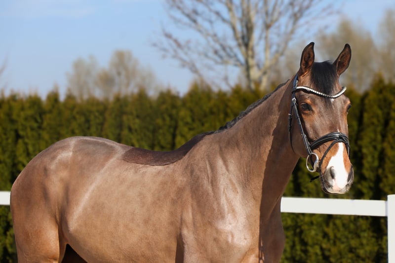 Canny is a stunning mare suitable for the whole family. She is very well-behaved and gentle in handling, easy for anyone to manage, and absolutely not spooky. She allows herself to be touched everywhere and by anyone, making her an excellent choice for children as well. Under saddle, she impresses with her calm temperament. She remains focused and undistracted, consistently bringing joy to her rider every day. She has received age-appropriate, sensible training, is familiar with lunging work, and has been raised impeccably. Thanks to her high level of engagement and clever nature, she learns new things quickly and can recall what she has learned at any time. She moves smoothly into the contact and forward willingly, providing a very comfortable riding experience and a high level of confidence. The mare also shows a lot of enthusiasm for jumping. She crosses obstacles confidently, doesn’t shy away from anything, and is the perfect horse to enjoy jumping fun. In the terrain, Canny is well-behaved and fearless. She goes calmly both in a group and alone from the pasture, demonstrating a very composed and obedient attitude in all three gaits. She also handles road traffic without issues. We can easily imagine this friendly, open mare as a great partner for teenagers who want to grow in the sport with support. Naturally, she is also suitable for any ambitious rider who wishes to compete at higher levels or participate in competitions, as well as for those seeking a relaxed partner for leisure riding. **BE SURE TO WATCH THE ENTIRE VIDEO, INCLUDING TRAIL AND JUMPING FOOTAGE.** Organizing transportation to her new home is no problem! Important notes: - The height information is estimated and not precisely measured. - All descriptions are subjective assessments by the seller and do not constitute guaranteed properties. Current X-rays (from 20.03.2026) without findings are available, as well as a flawless clinical examination. If you are interested or have further questions, please feel free to contact us anytime by phone at 015140555583. We are available on weekends and holidays. A trial ride is always possible.