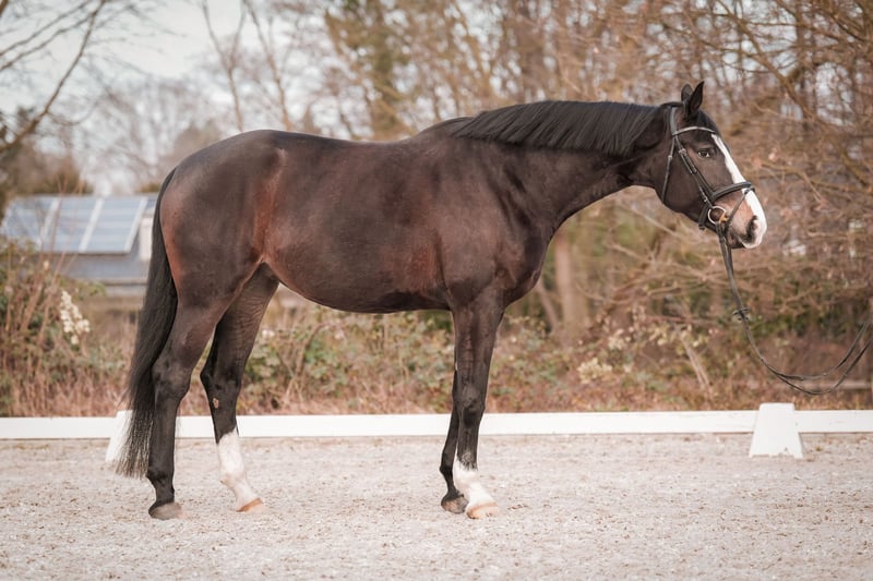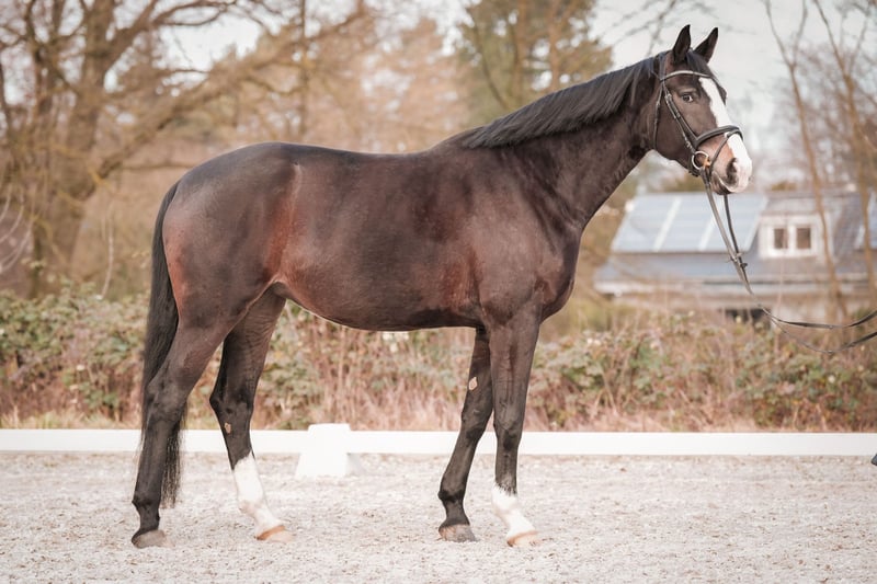 Ellis is een zeer brave en evenwichtige donkerbruine grote merrie. Ze is eind vierjarige en is aangezette op dressuurpaarden A-niveau. Ze kent al buitenwaarts galopperen, KK, uit de stap galopperen, etc. Heeft een zeer goede keuring. Direct van de fokker te koop. Bij interesse graag bellen of WhatsAppen naar 0170 28 46 173.
