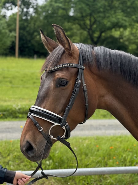 Mary Poppins has currently been started under saddle on behalf of the breeder to be placed in good hands. She has been raised with great care and showed herself to be absolutely uncomplicated during the initial training. After just a few weeks, she now shines in free jumping, in the field, on the lunge, and in dressage work. She improves every week, has three good basic gaits, and already shows a fairly secure connection. Mary Poppins is very eager to learn, absolutely well-behaved, and talented. A dream horse with a good, current vet check for further training.