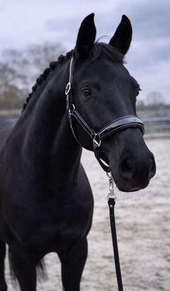 Fantasie is a 6-year-old black mare with an elegant presence. She impresses with three very nice basic gaits, a good and active hind leg, and a pleasant riding sensation. Although she has not been under saddle for long, she already proves to be very rideable. Approximate height: 16.1 hh. A very good TÜV report is available. She is ready to be further developed and trained. Please contact +4915752383659 for more information.