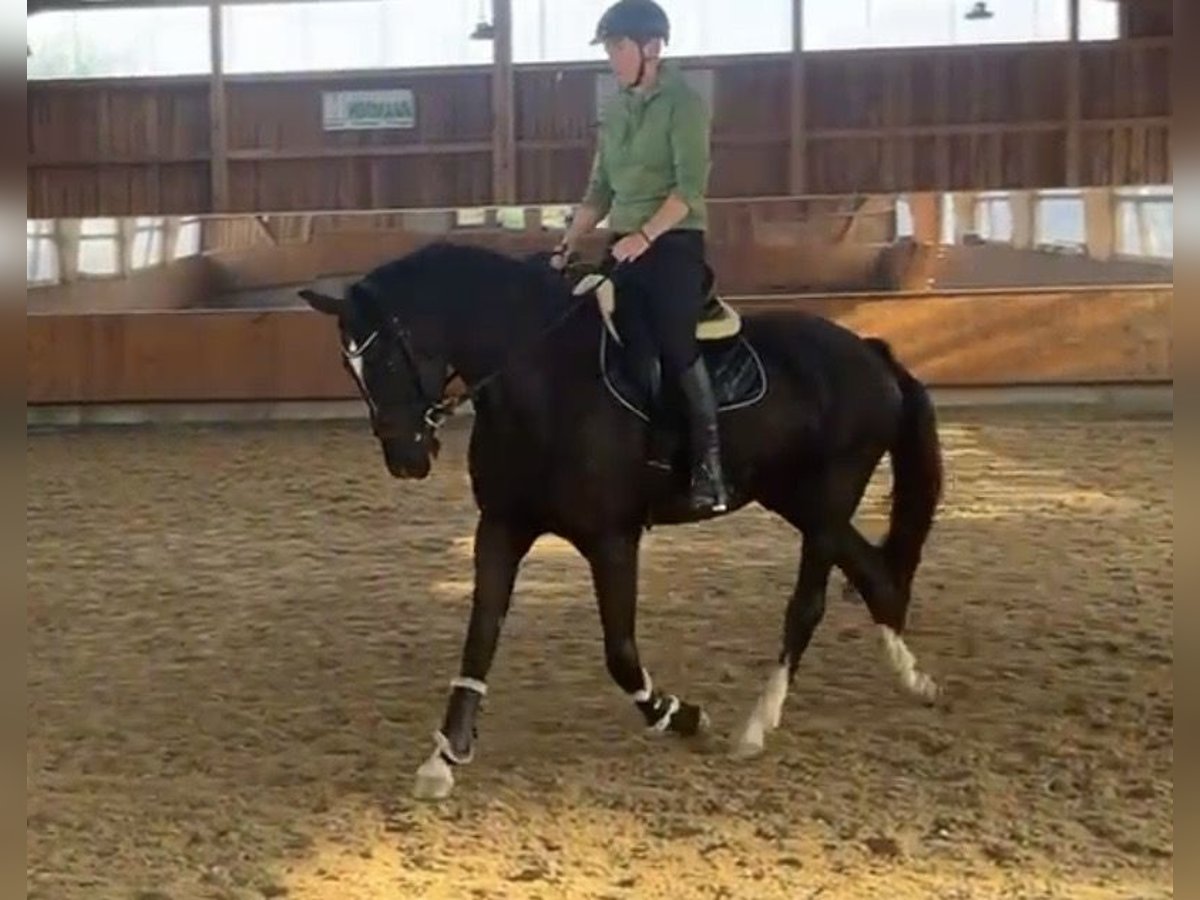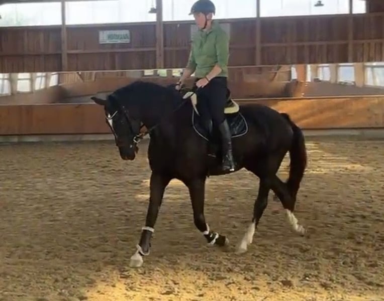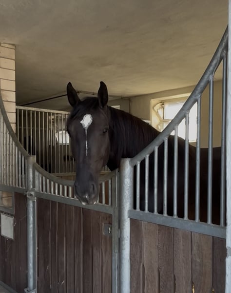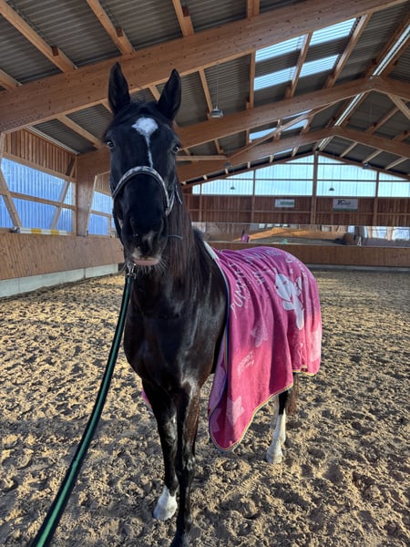 Schweren Herzens biete ich diese wunderschöne Stute zum Verkauf an. Sie ist 6jährig, ca. 1,65 m groß und läuft ohne Eisen. Sie geht unter dem Reiter in allen drei Grundgangarten und kennt Stangenarbeit. Auch im Gelände ist sie mit Begleitpferd schon schön mitgelaufen. Leider finden wir einfach nicht zusammen. Ich wünsche mir für sie ein Zuhause mit täglichen Koppelgang oder Offenstall und einer festen Bezugsperson, welche ihr die nötige Sicherheit und Führung gibt, die sie definitiv braucht. Aufgrund eines Magengeschwürs wurde sie in letzter Zeit nicht geritten und nur vom Boden aus gearbeitet. Plane, Regenschirm, Pfützen und Ball findet sie interessant und geht neugierig auf Dinge zu. Sie benötigt eine Reiterin oder einen Reiter mit ruhiger Hand und souveräner Führung, der sie fördert. Aufgrund ihrer Abstammung (Goldberg x Eminem) und ihren Bewegungsmöglichkeiten sicher auch für die Zucht interessant. Sie möchte beschäftigt werden, vor allem vom Kopf her. Stehtage nimmt sie trotzdem gelassen. Da sie sich aktuell leider nach dem Magengeschwür noch nicht gern satteln lässt und die Sicherheit einer souveränen führenden Bezugsperson braucht biete ich sie weit unter Wert an. Zähne und Ostheo wurden voriges Jahr gemacht. Passender Erre Plus Sattel kann für 3.500 Euro mit erworben werden. Bei Interesse oder für ein Kennenlernen freue ich mich über eine Nachricht.