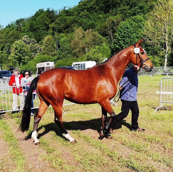 Harmonie ist eine sehr typvolle Stute . Sie hat ein sehr ausgeglichenes Temperament und unkompliziertes Wesen . Bei der Qualifikation für das LVM Fohlenchampionat erreichte sie 9x die 8,5 . Harmonies Mutterseite ist im Sport hoch erfolgreich bis zur Klasse S .DieGeschwiester der Mutter gehen bereits bis zur Klasse M. Sie sind in Luxemburg , Uwe Schwanz, Gut Neuenhof ,und Frederik Vekens . Ihr Vater High Motion war 3+4 jährig für das Bundeschampionat qualifiziert und gewann in Adelheitsdorf seine HLP. Harmonie wurde 3j kurz angeritten und dann nochmal auf die Weide gestellt. 4j wurde sie nochmals ca 6 Wochen geritten. Da ich aus gesundheitlichen Gründen nicht mehr reiten kann, wurde Harmonie nicht weiter ausgebildet und kann auch nicht vorgeritten werden. Sie war beim Anreiten absolut brav und unkompliziert Die gemachte Angaben sind unverbindliche Beschreibungen und stellen keine zugesicherten Eigenschaften dar. Der Verkäufer haftet nicht für Irrtümer, Eingabefehler und Datenübermittlungsfehler