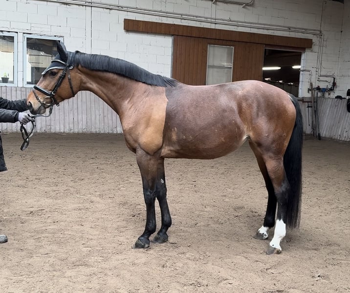 Creative is a beautiful and very charming 16.1 hh mare. She is so well-behaved that she can be ridden effortlessly by children. She is trained up to novice jumping (Class L) and has achieved placings in amateur competitions. She is absolutely safe and reliable, forgiving of mistakes and providing confidence to her rider. In dressage, she is easy to ride and very well-behaved. She is being sold by the breeder due to herd reduction. She has never been ill. Visits for a test ride are welcome. Caytens x Lacoste, born in 2020 Currently barefoot and uncomplicated.