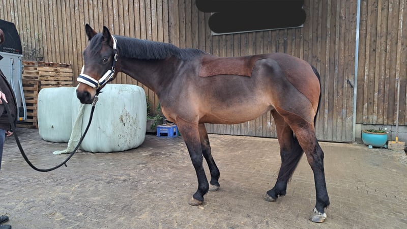 Cleo is a sweet and friendly mare. She will be seven years old in 2026 and stands approximately 1.64 meters tall. At the age of four, she had a very talented foal by Classico's Champion. She was bred successfully after only two inseminations. The pregnancy and foaling were uncomplicated. Sire: Contendrix (placed up to 1.60 m under Toni Hassmann) Dam's sire: Cordynox (placed internationally under Marcus Ehning) Her maternal half-brother is already competing successfully in show jumping up to L and L-Springen levels. At five years old, Cleo was gently backed and started under saddle. She rides calmly alone and in a group in the terrain and happily jumps small courses. She is easy to handle with the farrier and for clipping. She is loading well into the trailer. Cleo is familiar with both box and pasture keeping. Due to an accident in the pasture at age two, Cleo lost her right eye. I am therefore offering her below market value. She copes very well with her loss. Cleo is located in 51647 Gummersbach and can be visited and tried under saddle there. However, to be fair to the horse and avoid riding tourism, I charge a fee of €10 for a trial ride. If interested or for questions, please contact me via ehorses or WhatsApp at 0171 800 89 79. Cleo needs a dedicated person and will not be sold to riding schools or dealers. Priority goes to the right home!