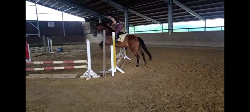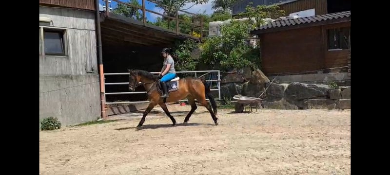 Cleo is a sweet and friendly mare. She will be seven years old in 2026 and stands approximately 1.64 meters tall. At the age of four, she foaled a very athletic foal sired by Classico's Champion. She was bred with only two inseminations. The pregnancy and foaling were smooth and uncomplicated. Sire: Contendrix (placed up to 1.60 m under Toni Hassmann) Grandsire: Cordynox (placed internationally under Marcus Ehning) Her maternal half-brother has already competed successfully in show jumping up to L**level and L**-class. At five years old, Cleo was gently backed and started under saddle. She rides confidently alone and in a group, both in the field and over small jumps. She is well-behaved for the farrier and during grooming. She loads reliably and is accustomed to both box and open stall housing. Due to an accident in the pasture at age two, Cleo lost her right eye. I am therefore offering her at a below-market price. She copes very well with this condition. Cleo is located in 51647 Gummersbach and can be visited and tested under saddle there. To avoid riding tourism and for fairness to the horse, I charge a fee of €10 for a trial ride. If interested or for questions, please contact me via ehorses or WhatsApp at 0171 800 89 79. Cleo requires a dedicated owner and will not be sold to riding schools or dealers. Priority goes to the right person!