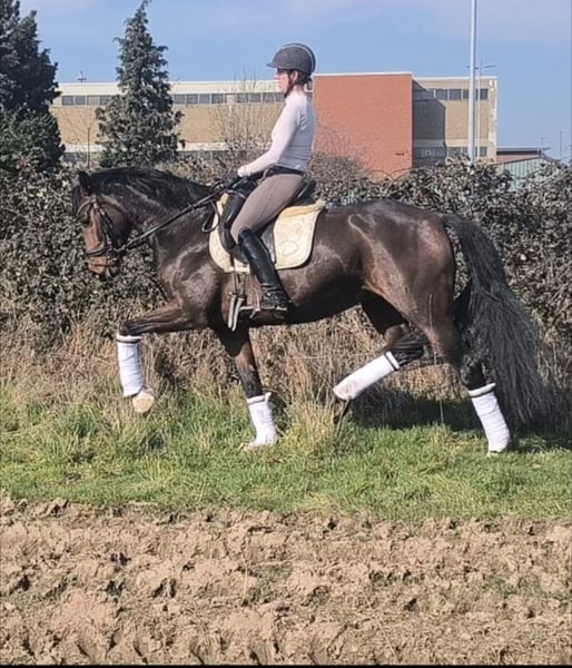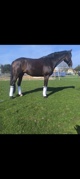 Wunderschöne im hengsttyp stehende Stute mit drei sehr guten GGA. Bei entsprechender Förderung ein Nachwuchs für den gehobeneren Sport. Sie besitzt ein ganz aktives Hinterbein und bietet einen hohen Sitzkomfort. Sie ist zurzeit auf einem L Niveau. Die Stute bringt genügend Esprit mit und ist dabei immer Kopf klar und regulierbar. Die Stute hat einen aktuellen klinischen TÜV und Röntgenbilder der Note 2. Wir suchen jemanden der die Qualität dieses Pferdes zu schätzen weiß, und sie fair ausbildet. Wir denken dem Pferd sind keine Grenzen gesetzt. Im Gelände wurde sie geritten welches sie sehr schön gemeistert hat. Beim Verladen und Auswärtstraining zeigte sie sich völlig entspannt und unkompliziert. Sie geht ebenfalls mit kleinen Kindern sehr liebevoll um. Sie hat ein kleines Hobby beim Fressen weshalb sie unter Wert abgegeben wird. Wir freuen uns über freundliche und wertschätzende Anfragen unter +49 1578 5402999 Beautiful stallion type mare with three very good GGA. With appropriate support, a young talent for the more upscale sport. It has a very active hind leg and offers a high level of seating comfort. It is currently at an L level. The mare has enough esprit and is always clear and adjustable. The mare has a current clinical TÜV and X-rays of grade 2. We are looking for someone who appreciates the quality of this horse and trains it fairly. We think there are no limits to the horse. She was ridden in the field, which she mastered very nicely. During loading and away training, she was completely relaxed and uncomplicated. She is also very affectionate with small children. She has a small hobby of eating, which is why she is sold below value. We look forward to friendly and appreciative inquiries under +49 1578 5402999.