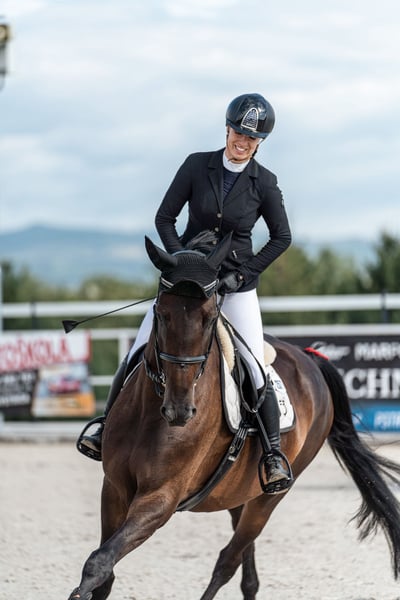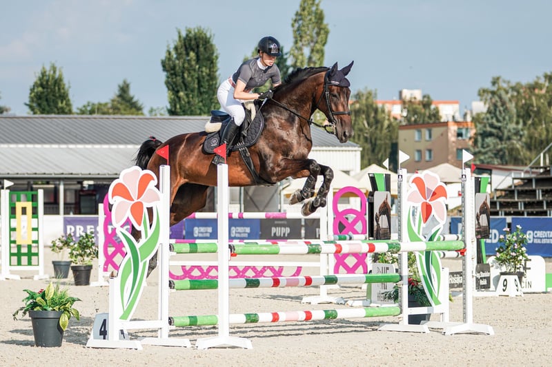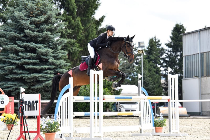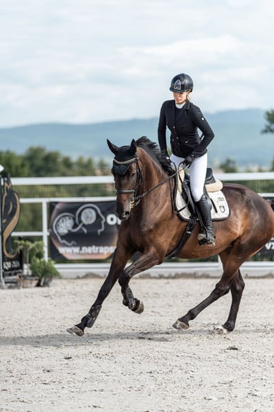 Madlen RUF Ogierka, lat 6 Ojciec: Nabab de Rêve Matka: po Aristo Z Zdjęcia rentgenowskie dostępne na życzenie. Odpowiednia do sportu na wysokim poziomie, obecnie startuje na wysokościach 125–130 cm (L, S). Mistrzostwa Młodych Koni (KMK): – 120 cm jako 5-latka – z miejscami i wyróżnieniami – nie startowała jako 6-latka Cena od 47 000 EUR Madlen RUF ma bardzo dobry temperament, jest towarzyska, łatwa w obsłudze, odważna i prosta w jeździe. Wykonuje skoki zmiany nogi w skokach automatycznie, jest przyjazna zarówno dla ludzi, jak i innych koni, oraz ma zrównoważony charakter bez nałogów. Łatwa do transportu (nawet samodzielnie) i dobra dla podkuwacza. Potrafi wspierać jeźdźca podczas skoków, bardzo dobrze reaguje na siedzenie, jest pracowita i zawsze stara się zadowolić swojego jeźdźca. Potrafi jeździć samodzielnie na przejażdżkach i jest niezawodna. Trzymana na harmonogramie 12/12. Posiada przestronne i piękne chodzenia, w tym duży, pokrywający ziemię galop. Ta klacz jest w 100% odpowiednia do sportu najwyższej klasy, obecnie trenuje na wysokościach 140–150 cm, jeździ nią kobieta. Wzrost: 173 cm.
