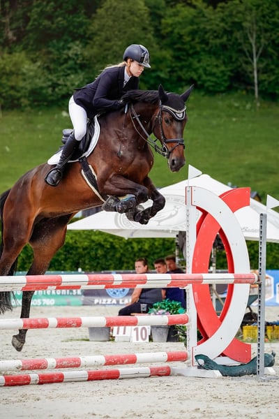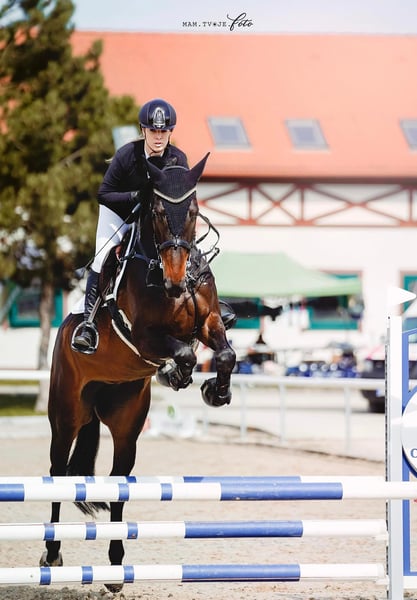Madlen RUF 6-jährige Stute Vater: Nabab de Rêve Mutter von Aristo Z Saubere Röntgenaufnahmen auf Anfrage verfügbar. Geeignet für den Hochleistungssport, aktuell im Turniersport bei 125–130 cm (L, S) erfolgreich. Junge Pferde Meisterschaften (KMK): – 120 cm als Fünfjährige – platziert/ausgezeichnet – Als Sechsjährige nicht gestartet Preis ab 47.000 EUR Madlen RUF verfügt über ein sehr gutes Temperament, ist menschenbezogen, leicht zu handeln, mutig und einfach zu reiten. Sie macht fliegende Wechsel automatisch, ist freundlich zu Menschen und anderen Pferden und besitzt einen ausgeglichenen Charakter ohne Vorerkrankungen. Leicht zu transportieren (auch alleine) und gut beim Hufschmied. Sie kann den Reiter bei den Sprüngen unterstützen, reagiert sehr fein auf die Sitzhaltung, ist fleißig und bemüht, den Reiter zufriedenzustellen. Sie geht alleine ausreiten und ist zuverlässig. Sie wird nach einem 12/12-Trainingsplan gehalten. Ihre großzügigen, schönen Gänge, inklusive eines großen, bodenständigen Galopps, zeichnen sie aus. Diese Stute ist zu 100 % für den Spitzensport geeignet, aktuell im Training bei 140–150 cm, geritten von einer Frau. Größe: 173 cm.