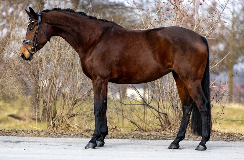8-Year-Old Quality Mare – Rideable, Reliable, Versatile Valveres Valerie is an expressive eight-year-old bay mare with a very good basic attitude and a clear willingness to perform. A horse that impresses with quality overall – honestly trained, dependable, and with potential for the future. In daily handling, she is friendly, personable, and uncomplicated. Under saddle, she is pleasant to ride, well-responsive, and always cooperative. She confidently handles trail rides, is familiar with different riding situations, and remains reliable throughout. Valerie was ridden and lovingly cared for by a young rider. Due to a new life chapter (A-levels and university), she was offered for sale. Her training is solid, correctly structured, and not overwhelming. Since joining us, she has been further developed in dressage and shows great willingness to learn and quick comprehension. She enjoys working, has a good basic character, and is intelligent. She willingly adapts to new requirements. She is comfortable in the saddle, responds softly to aids, and maintains good contact. At the same time, she remains always manageable and provides a confident riding experience. This makes her suitable for amateurs as well as ambitious riders. During grooming, she may occasionally react a bit stiffly, but this is easily manageable and not problematic in everyday handling. A versatile, rideable mare with an honest character and further development potential – suitable for dressage training as well as relaxed trail rides.