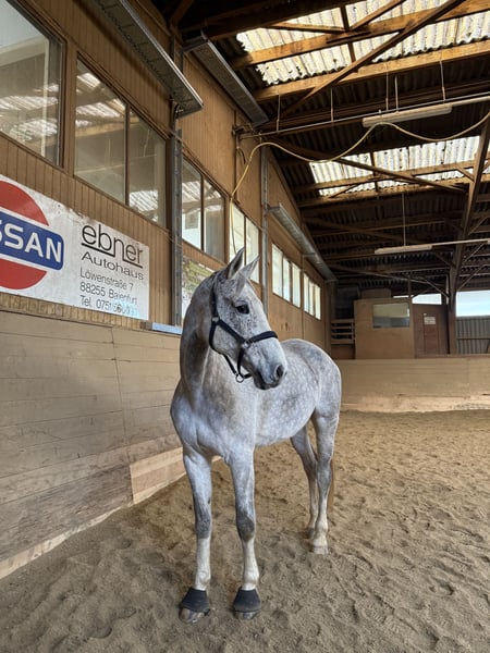 Aus privaten Gründen wird diese 9-jährige, ca. 1,78m große Stute im Auftrag einer Freundin verkauft. Sie wurde 3-jährig gekauft, selbst eingeritten und mit viel Ruhe und Zeit ausgebildet. Dabei zeigt sie sich stets unkompliziert, anständig und sehr lernwillig. Im täglichen Umgang sowie unter dem Sattel ist sie absolut brav und verlässlich. Sie ist jederzeit gut handelbar, freundlich im Wesen und kennt keinerlei Unarten wie Steigen oder Bocken - eine Stute, auf der man sich einfach wohlfühlt. Aktuell wird sie freizeitmäßig geritten und auf A/L-Niveau gesprungen, wobei hier definitiv noch mehr Potenzial vorhanden ist. Vierjährig wurde sie zweimal auf Turnieren vorgestellt und konnte sich bereits beim zweiten Start an vierter Stelle platzieren. Da von Seiten der Besitzerin kein weiteres Turnierinteresse bestand, wurde sie in diesem Bereich nicht weiter gefördert. Sie ist brav beim Verladen, zuverlässig beim Hufschmied, geländesicher - sowohl alleine als auch in der Gruppe - und kennt sowohl Herden als auch Einzelhaltung (herdenverträglich, eher rangniedrig). Auch die Führmaschine gehört zur wöchentlichen Routine. Insgesamt ist sie eine vielseitige und zuverlässige Partnerin mit tollem Charakter, die gefallen möchte und für vieles zu haben ist - ideal für entspannte Ausritte, sportliche Ambitionen oder als zuverlässiger Freizeitpartner. Da sie der Besitzerin sehr am Herzen liegt, zählt klar Platz vor Preis.