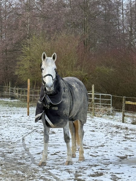 For personal reasons, this 9-year-old, approximately 17.8 hands mare is being sold on behalf of a friend. She was purchased at age 3, backed by her owner, and has been carefully and patiently trained. Throughout her training, she has always been straightforward, well-mannered, and very eager to learn. In daily handling as well as under saddle, she is absolutely well-behaved and reliable. She is easy to handle at all times, friendly in nature, and shows no bad habits such as rearing or bucking — a mare that simply makes riding enjoyable. Currently, she is being ridden for leisure and jumping at novice to amateur level, with definitely more potential for development. As a four-year-old, she was introduced to competitions twice and managed to place fourth in her second start. Since her owner had no further competitive ambitions, she was not further promoted in this area. She is easy to load, reliable with the farrier, confident in the arena and on trails — both alone and in a group — and is familiar with herd life as well as individual turnout (herd-compatible, rather lower in the ranking). The lunging routine is also part of her weekly training. Overall, she is a versatile and dependable partner with a wonderful character, eager to please and suitable for many activities — ideal for relaxed rides, sporting ambitions, or as a trustworthy leisure horse. As she holds a special place in her owner’s heart, the owner’s preference for a good home clearly takes precedence over price.