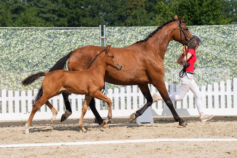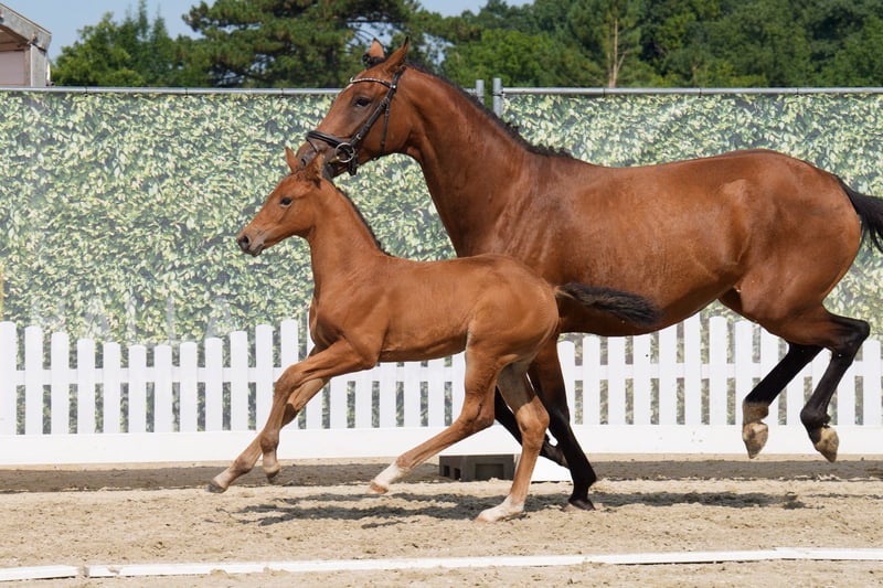 Zum Verkauf steht dieses wunderschöne Stutfohlen von Kjento aus einer Global Player Mutter, das gleich zweimal weltmeisterliches Blut in sich trägt! Kjento wurde im Jahr 2021 bei der Weltmeisterschaft in Verden zum FEI-Weltmeister der 6-jährigen Dressurpferde gekrönt. Mit insgesamt 96% waren Lottie und Kjento die absoluten Favoriten der Jury und auch des Publikums! Er war außerdem jüngst siegreich bei seinem Intermediare II Debüt und ist somit im großen Viereck angekommen. Global Player ist Europameister, Weltmeister, Vize-Bundeschampion und zweifacher Siegerhengst. Mit sagenhaften 97,600 Prozent krönte sich Global Player bei der Weltmeisterschaft der sechsjährigen Dressurpferde 2022 in Ermelo/NED zum unangefochtenen König. Das Fohlen besitzt mit seiner Abstammung, seinem korrekten Exterieur, seinen sehr guten Grundgangarten und seinem freundlichen Wesen die besten Voraussetzungen für eine erfolgreiche Karriere als Sportpferd. Bei Interesse freuen wir uns über Ihre Nachricht!