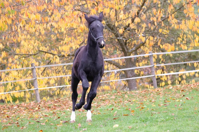 Zum Verkauf steht eine wunderschöne Westfalen-Stute, geboren im Jahr 2025. Sie ist eine beeindruckende Rappstute mit einem Stockmaß geschätzten Endmaß von 168 cm. Sie überzeugt durch ihre elegante Erscheinung, ihre Unerschrockenheit und ihr freundliches Wesen. Sie ist bestens für den Spring oder Dressursport geeignet und zeigt bereits viel Talent in den Gangarten und im Springen. Ihre Bewegungsqualität und ihr springfreudiges Temperament machen sie zu einer vielversprechenden Partnerin für ambitionierte Reiter. Sie hat eine solide Grundausbildung des Fohlen ABCs sowie auch regelmäßigen Kontakt zum Hufschmied. Alle tierärztlichen Untersuchungen wurden regelmäßig durchgeführt. Bei Interesse oder weiteren Fragen stehe ich Ihnen gerne zur Verfügung. Vereinbaren Sie gerne einen Termin für eine Besichtigung !