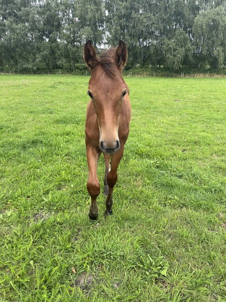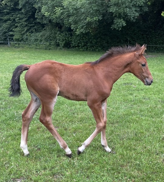 Zum Verkauf steht ein wunderschönes Stutfohlen, geb. am 28.04.2025 mit einer hervorragenden Springabstammung. V: Chacco‘s son I MV: Kashmir van't Schuttershof/Kannan Das Fohlen steht den ganzen Tag auf der Wiese und kommt nur nachts in den Stall. Bei Interesse kann sich das Fohlen jederzeit angeschaut werden. Die Mutter lief 1,40 Meter erfolgreich. National und international.