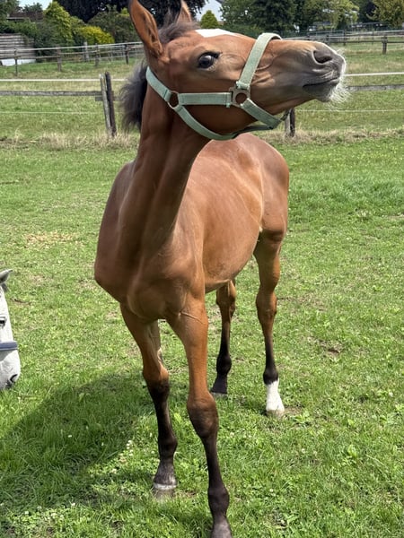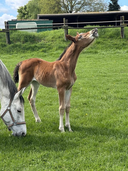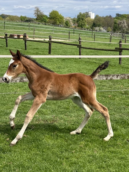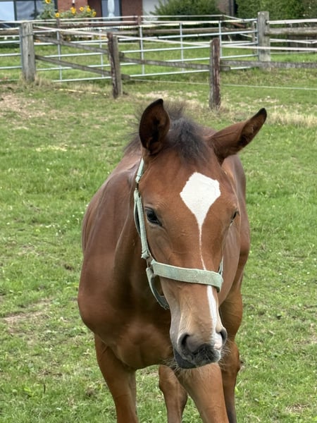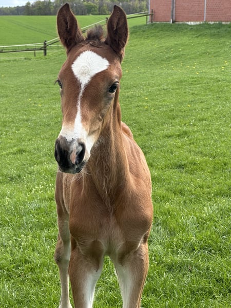 Typy filly with top movements from loving upbringing with absolutely top pedigree. The filly is from the first foal crop of the Tangelo van de Zuuthoeve son, Tangelo's Kunterbunt, licensed in 2023 in Westphalia. The foal is sold directly by the breeder.