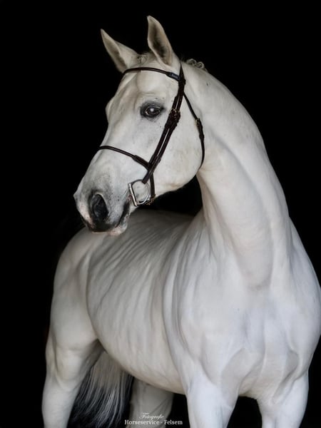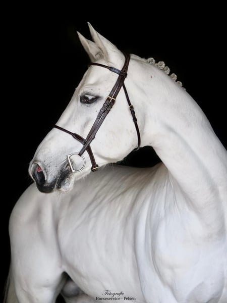 Here is an impressive Westphalian stallion, born in 2016. His stallion demeanor is completely free of any stallion-like behavior. This grey impresses with his elegant appearance and his very friendly and balanced temperament. With a height of 16.1 hh, he offers the perfect size for ambitious riders seeking a reliable show jumping partner up to the advanced level. His talent for jumping and athletic build make him an ideal partner for competitive sport. He is perfect for riders who need confidence in the 1.60 m class. Therefore, he is suitable for amateurs as well. The stallion is very well-trained and shows promising jumping qualities. With numerous placings and wins up to the 1.60 m level, he has ample competition experience. Very easy to handle in daily handling, one does not notice his stallion status. If you are interested or would like more information, I am happy to assist. A visit on-site is very welcome by appointment. Experience this exceptional horse in person and see for yourself his great potential!