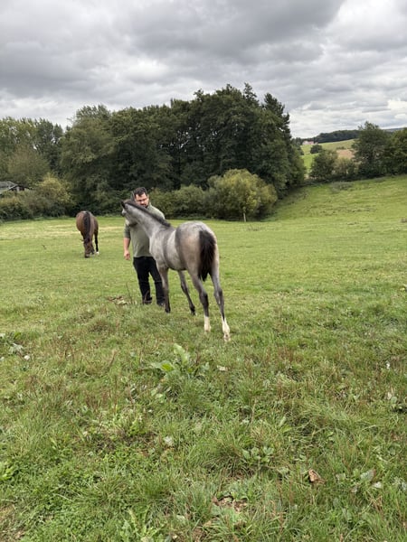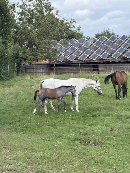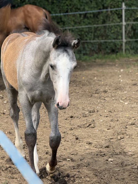 Westfälisches Hengstfohlen aus April 2025 von Zoom – Doppelveranlagung Zum Verkauf steht ein westfälisches Hengstfohlen des Jahrgangs 2025 aus moderner, sportlich geprägter Doppelveranlagungs-Abstammung. Das Fohlen überzeugt durch harmonischen Körperbau, korrektes Fundament sowie taktsichere, elastische Bewegungen. Abstammung Vater: Zoom (Westf.) Doppelveranlagter Hengst, der für Rittigkeit, Leistungsbereitschaft und vielseitige sportliche Nutzung steht. Mutterlinie: über Coupie (Westf.) – ELP R/S Münster-Handorf Noten: 8,49 / 7,48 / 9,33 Linie Coupe de Coeur – Calido – Cantus In der weiteren Mutterlinie Cordalme und Cor de la Bryère. Aufzucht & Entwicklung Der Hengst wächst direkt beim Züchter auf und kommt aus erster Hand. Er wird artgerecht in einer Hengstherde aufgezogen, was eine stabile soziale Entwicklung fördert. Hufe und Fundament sind korrekt gebaut, altersgerecht entwickelt und werden regelmäßig kontrolliert. Charakter Neugierig, sanft im Wesen und wissbegierig, dabei aufmerksam und klar im Kopf. Menschenbezogen und unkompliziert im täglichen Umgang. Perspektive Vielseitig gezogenes Nachwuchspferd mit Doppelveranlagung, gut geeignet für Freizeit sowie für ambitionierte Sportreiterinnen und Sportreiter. Besonders prädestiniert für die Vielseitigkeit. Besichtigung ist jederzeit nach Absprache direkt beim Züchter möglich. Anfragen bitte ausschließlich bei ernsthaftem Interesse und mit der Perspektive auf ein nachweislich gutes Zuhause.
