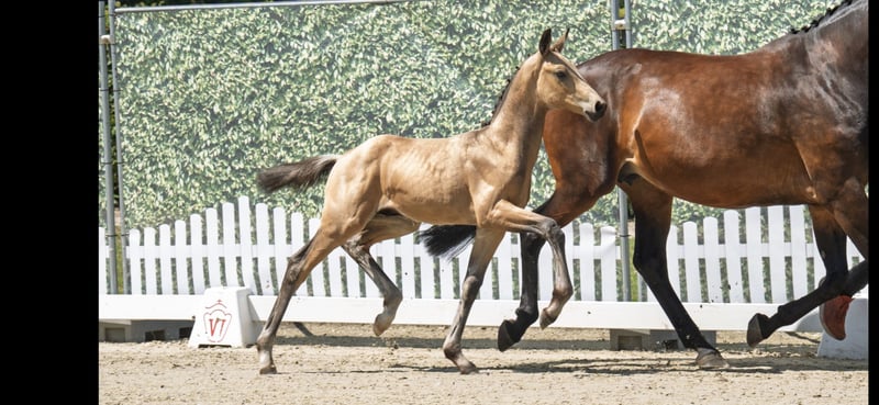 Puledro stallone molto movimentato, nato da una fattrice premiata con doppia predisposizione e riconosciuta dalla Verband. Ottimo tipo, grande e tranquillo, Molto mansueto, conosce le basi del puledro e non ha cattive abitudini.