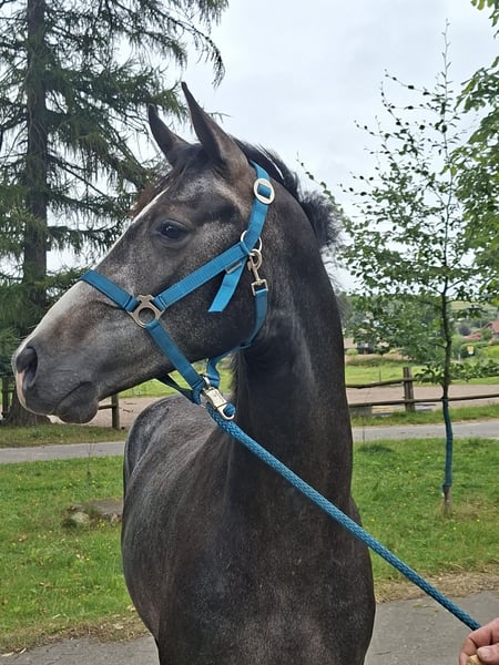 We are selling a 2.5-year-old stallion that stands 1.63m tall. He is sired by Diro (Diamant de Semilly) × Casino Berlin. Diamant de Diro is a very people-oriented horse that has enjoyed a very species-appropriate upbringing with regular feeding of minerals. He is farrier-friendly and good to load. This stallion has already proven to us that he can jump very well. So, if you are looking for a truly talented show jumping horse to train, please feel free to contact me, preferably by phone. Tel. 015117670724 Best regards, Rita Bruns