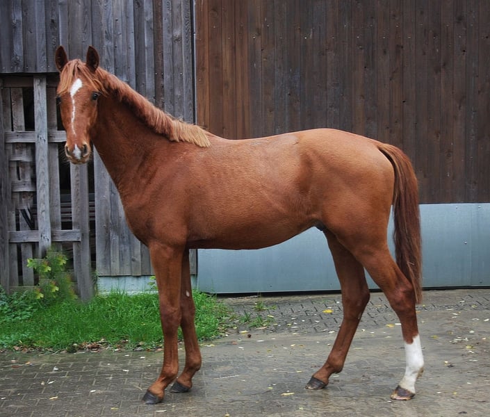 Zum Verkauf steht ein schicker, 2024 geborener Fuchs-Hengst aus bester Dressurabstammung: Kjento x Crosby x Spielberg. Durch seine kraftvolle Hinterhand, gute Balance und seinen elastischen Bewegungsablauf ist Kemble nicht nur für die Dressur, sondern auch für den Springsport hochinteressant. Seine Abstammung sowie sein Bewegungsablauf lassen auf vielseitige sportliche Perspektiven schließen. Im Umgang zeigt sich Kemble brav und unkompliziert. Er ist schmiede- und verladefromm und somit bestens auf seinen weiteren Ausbildungsweg vorbereitet. Er wird voraussichtlich ein Stockmaß von ca. 165–168 cm erreichen und ist damit ein ideales Damenpferd zum Selbstausbilden – sowohl für den ambitionierten Freizeitreiter als auch für den Sport in Dressur und Springen. Ein tolles Nachwuchspferd mit viel Qualität, Charakter und vielseitigem Potenzial. Bei Interesse gerne melden – Kemble freut sich auf ein liebevolles neues Zuhause. 🐎