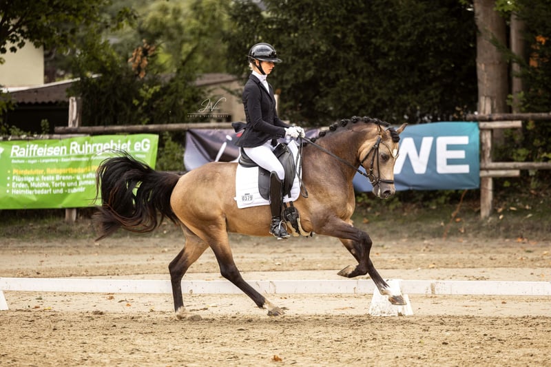 Ten uroczy ogier wyróżnia się wyjątkowym wyglądem i przyjaznym usposobieniem. Już teraz wykazuje duży talent w ujeżdżeniu i ma absolutne predyspozycje na championat! W konkursach skokowych pokonał konie dużej rasy z wynikiem 8,2!!! Jest dobrze wychowany, posłuszny w obsłudze i ma już pierwsze doświadczenia treningowe. Jest naprawdę łatwy w obsłudze dla każdego i po prostu chce się podobać! Żadne zachowania typowe dla ogiera!!! W przypadku zainteresowania lub dodatkowych pytań, prosimy o kontakt! Na jazdę próbną pobieramy opłatę w wysokości 50 €, którą można odliczyć od ceny zakupu!