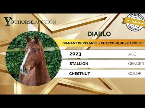 Vriendelijk en veelzijdig sportpaard met veel vermogen Een vriendelijk paard met een makkelijke instelling. Maakt een eenvoudige, correcte sprong en pakt het werk goed op. Beschikt over een ruime, evenwichtige galop en beweegt soepel in draf. Toont een correcte manier van springen en is geschikt voor meerdere disciplines. Vader Diamant de Zelande – 1.40m niveau Zoon van Diamant de Semilly (1.60m), één van de beste verervers wereldwijd. Moderne hengst met vermogen en techniek. Moeder Elle Chacco Bogibo (v. Chacco-Blue 1.60m) Springt op 1.10m niveau. Moederlijn / Stam Grootmoeder Bassini Bogibo (v. Carousel) Uit de moederlijn: – From Chaccomo Bogibo – 1.30m Verder in de stam: – Adamante Bogibo – 1.30m – Torlanda – 1.45m – VIP Bogibo – 1.50m – Brindis Bogibo – 1.60m–1.70m – Cassirado Bogibo – 1.40m Goedgekeurde hengsten in de lijn: Diamant de Zelande, Diamant de Semilly, Kannan GFE, Chacco-Blue, Carousel Sterke internationale prestatiestam met meerdere 1.40m–1.70m paarden.