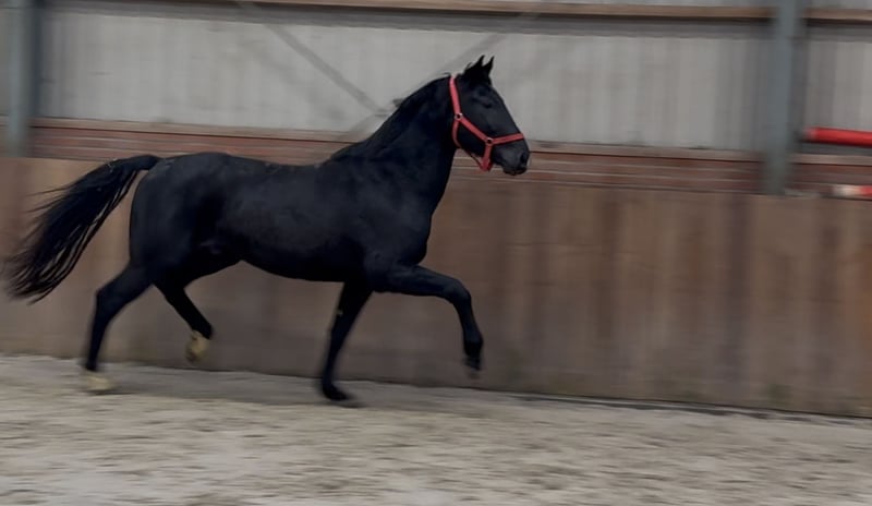 Eye-catching and impressive stallion. Taurus x Freudentänzer. A horse with three strong gaits. He is still green and untrained but very honest in hand. For inquiries, please call or WhatsApp: +31(0)643197337