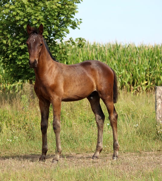 Este potro tipo y vigoroso agrada no solo por sus tres andares básicos muy buenos, discretos y expresivos y su base extremadamente correcta. El hijo del propietario Sir Escolar también es extremadamente encantador, orientado a las personas, curioso y dispuesto a aprender. Ya domina el potro completo ABC. El Padre Sir Escolar tiene tres pasos básicos excelentes y altamente dinámicos y pertenecía al lote premium en la licencia de Westfalia. Madre: Finest x Samarant