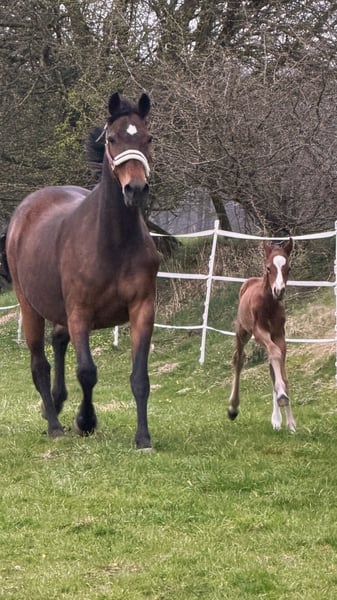 Nach dem Absetzen darf der kleine Dante ausziehen. Jungpferdeerfahrung setzen wir ebenso voraus, wie eine artgerechte Haltung mit Altersgenossen. Dante zeigt sich jetzt schon von seiner besten Seite. Er verfügt über schöne und schwungvolle Gänge, ist aufgeweckt, sucht immer den Kontakt und freut sich über jeden Besuch. Halfter und Strick sind ihm ebenso bereits bekannt, wie putzen und Hufe geben. Seine Abstammung spricht wohl für sich. Der äußerst typvolle Dante Weltino-Sohn DANESTOS - in lackschwarzer Aufmachung - begeistert mit Präsenz und überragendem Potential. Den 50-Tage-Test in Schlieckau absolvierte er souverän mit 8ter Noten und qualifizierte sich 2020 für das Bundeschampionat. Unter seinem Reiter Manuel Springhetti ist DANESTOS mittlerweile in der schweren Klasse angekommen, platzierte sich mehrfach hoch in Dressurprüfungen der Klasse S sowie in der Qualifikation zum Nürnberger Burgpokal 2023 und 2024. Bei den Österreichischen Meisterschaften 2023 in Kärnten sicherte sich das Paar den Bronze-Rang in der Kleinen Tour. In der Saison 2024 war DANESTOS siegreich bis Intermédiaire I und kann aktuell erste Erfolge auf Grand Prix-Niveau feiern. Sein Vater ist der international für Schweden erfolgreiche Dante Weltino. Über ihn sowie über seine Mutter, die Verbandsprämienstute Silia von Sir Donnerhall, ist DANESTOS gleich dreimal auf Donnerhall I gezogen. Sir Donnerhall war erfolgreicher Bundeschampionatsteilnehmer und seine Nachkommen sind seit Jahren hocherfolgreich im Dressursport. Silia ist Halbschwester zum S-Dressurpferd Salierie und zu dem Landbeschäler SUNDAY von Sandro Hit. Er ist mit Anja Wilimzig hoch platziert bei Bundeschampionaten, der Weltmeisterschaft der jungen Dressurpferde und in Grand Prix Prüfungen. Landina brachte stets qualitätsvolle, gesunde und vor allem charakterfeste Fohlen zur Welt. Die Stute ist ebenso ein Traum, wie der Vater Danestos. Sie ist eine Tochter des dreifachen Bundeschampions Lissaro van de Helle. Ihre Abstammung führt über Labrador, Ramiro Z und Paradox, zurück auf den renommierten westfälischen Stamm der Flutwelle von Sielhorst. Dieser Stamm brachte bekanntlich über 20 gekörte Hengste, darunter Sandro Boy Junior, Primeur´s Ass und Festival, sowie einige Siegerstuten in Münster Handorf hervor. Landinas bisherigen Nachkommen zeigen sich bis dato vielversprechend in Dressurprüfungen, bis zur Klasse L.
