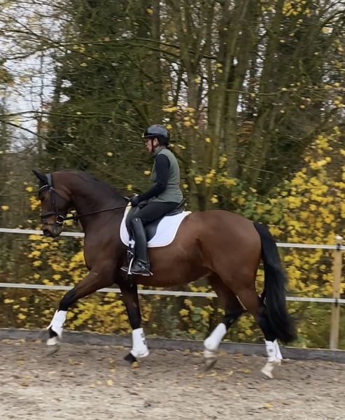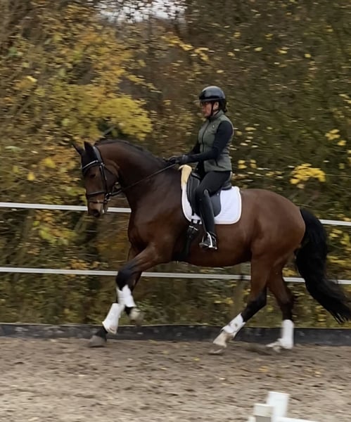 Versatile gelding with a focus on dressage and excellent trail and jumping qualities This charming gelding impresses with solid dressage training and a love for varied work. He thoroughly enjoys lunging, cavaletti exercises, and small jumps; however, he has not been further trained in jumping competitions. In the field, he proves to be sure-footed and relaxed – ideal for leisurely rides but always ready for a brisk canter. He is familiar with work on the bit and was originally approved as a double-licensed stallion for the Westphalian breeding association. Due to his previous experience, he is not suitable as a male horse or for competition; he requires a sensitive, experienced rider who appreciates his qualities. Perfectly suited for ambitious leisure riders seeking a versatile, light-ride, and sensitive horse who enjoys varied work. Note on keeping: The gelding is accustomed to daily turnout in summer and winter. We wish to continue this type of management, as it suits him very well. Video available upon request