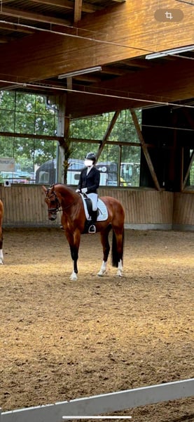 Bildhübscher leistungsbereiter Westfalen Wallach von privat zu verkaufen. Wir suchen für unseren talentierten springbetonten Wallach ein neues Zuhause. Im Springen ist er bis M platziert und will immer auf die andere Seite. Er geht sicher und zuverlässig durch den Parcours und hat hier sehr viele Erfolge vorzuweisen. Er springt zuverlässig Wechsel und ist in der Dressur bis zu einem L-M Niveau ausgebildet. Mit einer jungen Amazone im WBO Bereich vorgestellt und direkt E und A Dressur platziert. Er geht sicher und unerschrocken ins Gelände. Er ist brav im Umgang, schmiede- und verladefromm und für ambitionierte Reiter geeignet. Ein guter TÜV mit Bildern aus 11/2023 liegt vor. Der Wallach stammt aus bestem Hause. Diarado (ein bis S Springen erfolgreicher Hengst) x Curd (ein ebenfalls bis S erfolgreicher Leistungserprobter Hengst der auf Come On - Acord 2 zurück geht) Mütterlicherseits befinden sich die bekannten Namen Pilot und Frühlingsball im Pedigree. Bei Interesse oder für weitere Informationen freuen wir uns über Ihre Nachricht mit kurzer Info was für einen Partner Sie suchen. Video bei ernsthaftem Interesse